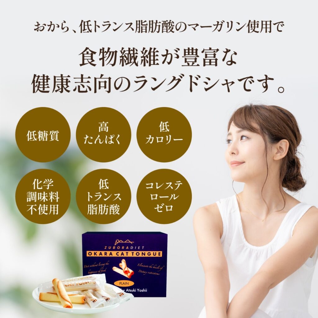 - 食品(お菓子)の企画、販売(自社ブランド「ZUBORA DIET」)